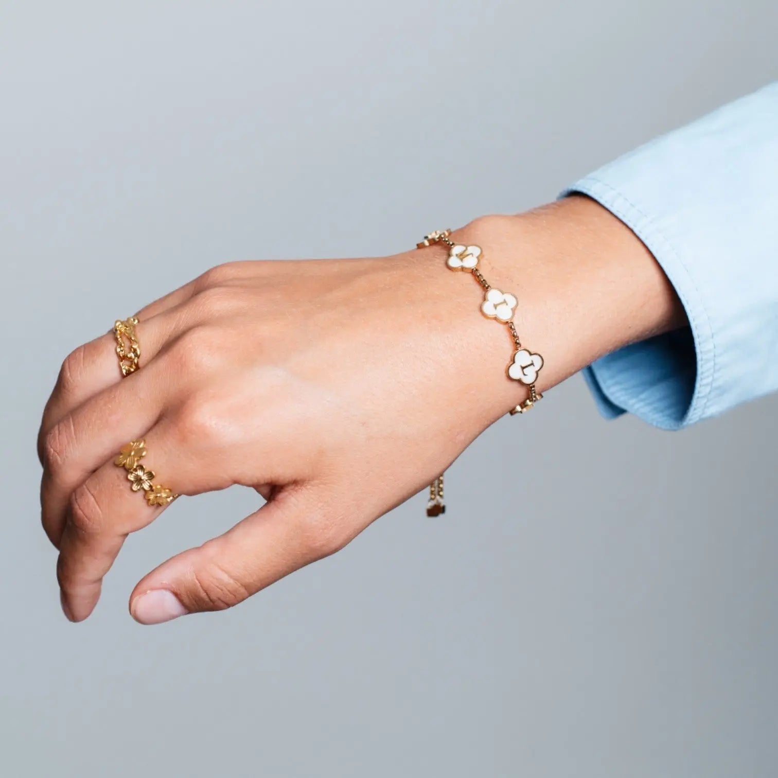 Vores Clover Navnearmbånd er skabt til dig, der ønsker et personligt og meningsfuldt smykke med et eksklusivt udtryk. Vælg mellem 1 til 6 clover-led og få indgraveret initialer, der betyder noget for dig – dine egne, dine kæres eller dem, der inspirerer dig. De smukke clover-vedhæng kombinerer luksus og individualitet på den fineste måde.