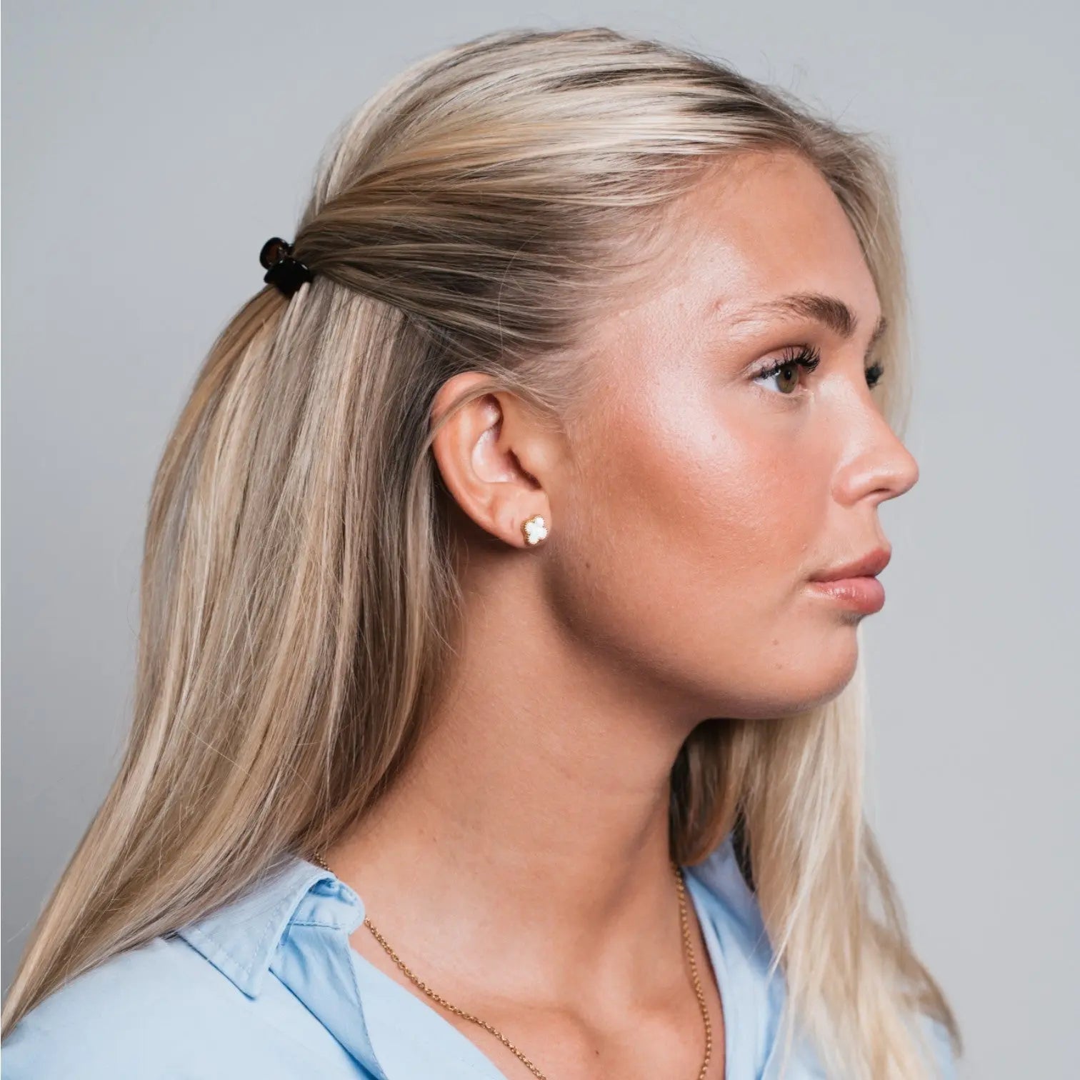 Vores Clover Ørestikker er det perfekte match til dine andre Clover-smykker. De elegante firkløverformede øreringe med perlemorslook udstråler klassisk skønhed og passer til både hverdag og fest. En tidløs tilføjelse til din smykkesamling, der fuldender dit look med et strejf af eksklusivitet.